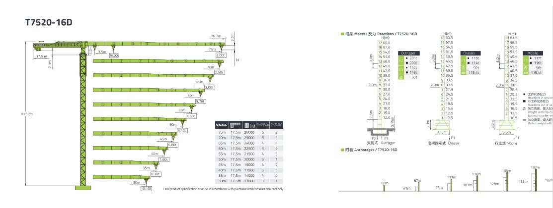 - Pluma 70 m. 1500 kg 16 ton max. Cap.